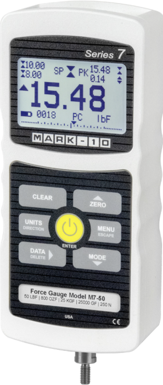 With the broadest force range in the industry (capacities from 50gF full scale to 2,000 lbF), Mark-10 offers digital force gages for all the applications. Mark-10 force gages real time and peak forces in both compression and tension and have selectable units of measurement. These gages may be handheld or used with a force test stand for a complete testing solution.