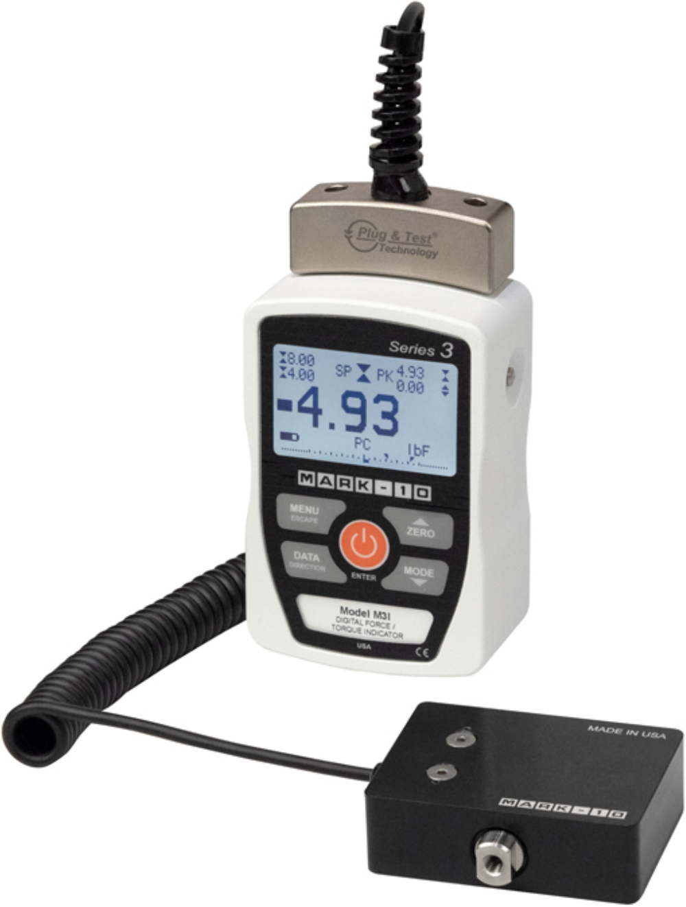 With the plug and test technology, Mark-10 offers a series of indicators with interchangeable force and torque sensors (sold separately). There are three indicators models available, with force sensors with capacities from 0.25 to 10,000 lbF ( 1 N to 50 kN) and torque sensors with capacities from 10 ozFin to 5,000 lbFin (7 Ncm to 550 Nm). This wide range offers a solution for every project.